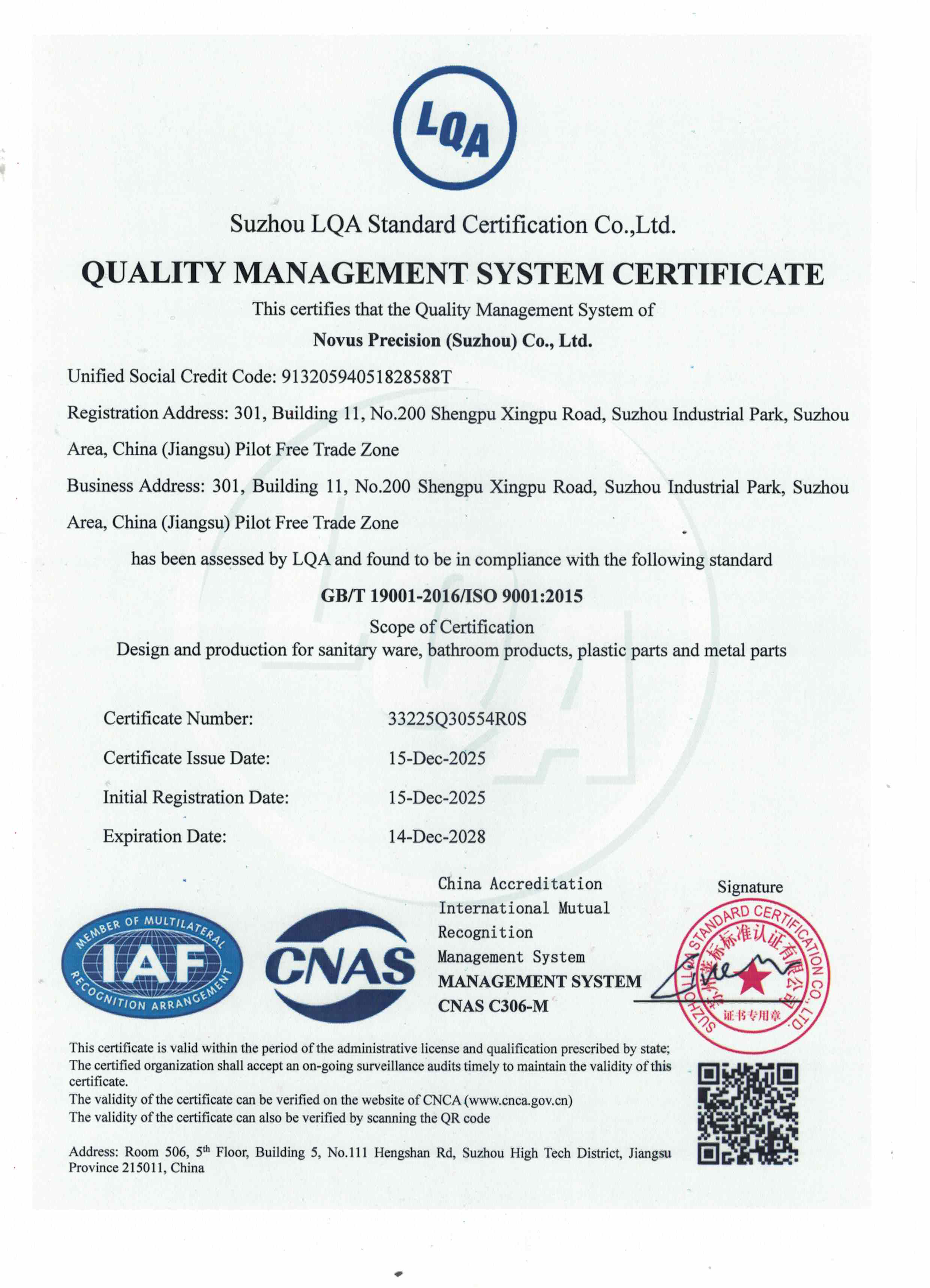 Certificates for d line’s China production